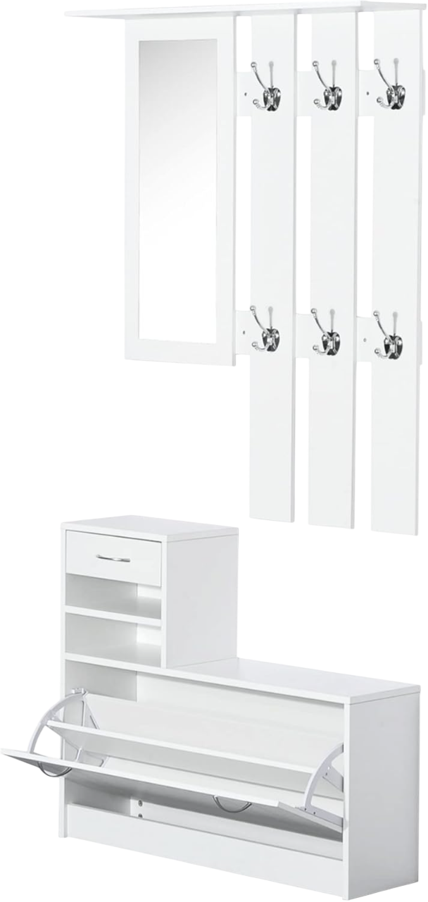 Dale un toque moderno y funcional a tu entrada con este conjunto de recibidor espejado de Homcom. Incluye un perchero y un zapatero, combinando almacenamiento práctico con un diseño elegante y reflejante que amplía visualmente el espacio. ¡Perfecto para mantener tu hogar organizado y con estilo!