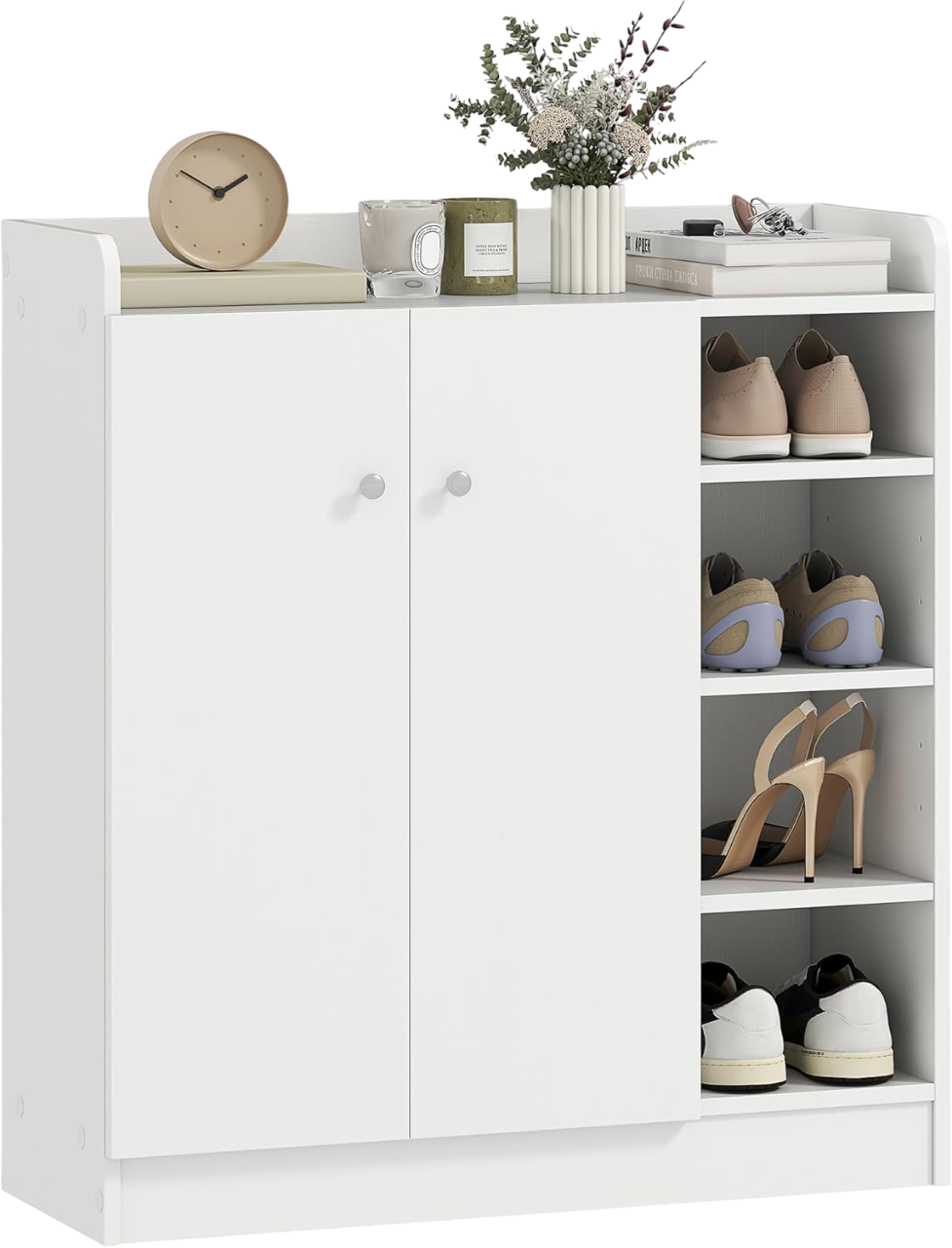Mantén tus zapatos organizados con este zapatero de Homcom. Con un diseño elegante y compacto, ofrece 2 puertas con 4 baldas interiores y 4 baldas exteriores para un almacenamiento versátil. Ideal para entradas o dormitorios, combina funcionalidad y estilo.